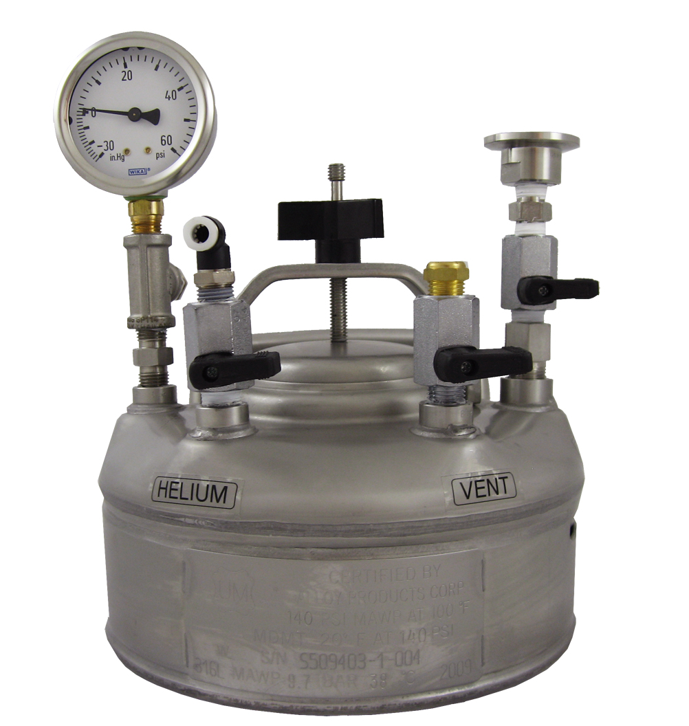 The Eurovacuum Helium saturation chambers are used to inject helium into small, sealed devices in preparation for helium leak testing. The saturation or bombing method is commonly used when it is impractical to inject the helium tracer gas into the part during assembly. Generally, saturation is best suited for hermetically sealed devices with small internal cavities and is normally performed with batched parts.