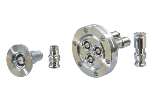 Eurovacuum offers for special demand our BNC/MHV coaxial feedthroughs, based on MIL-C-39012A, is available in ISO-KF and CF-F flanges and in 5 different specification ranges.