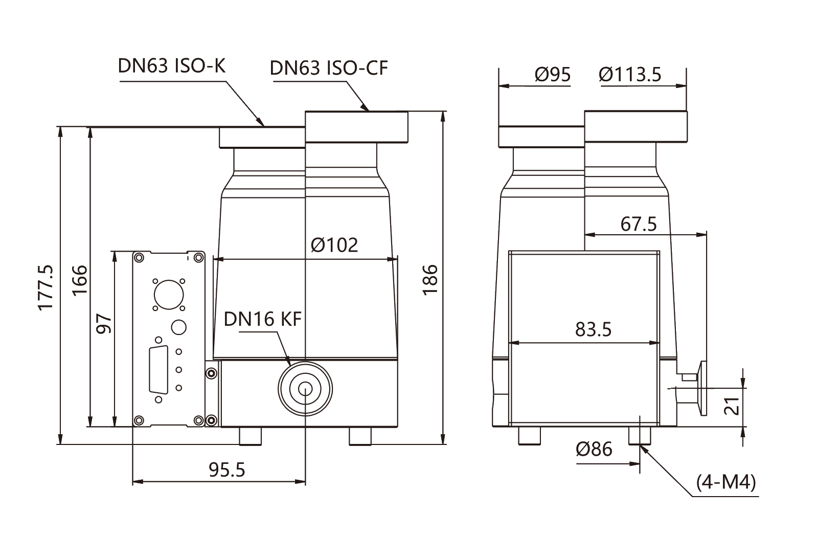 | Inlet Flange | DN 63 ISO-K | DN 63 CF | |